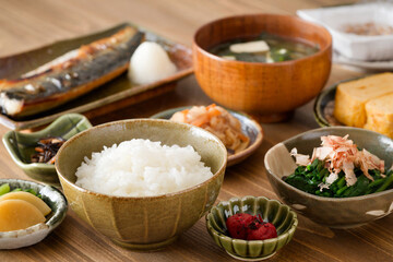 炊きたてのご飯に、土地の恵みを生かしたおかず、やさしい味わいの汁もの。