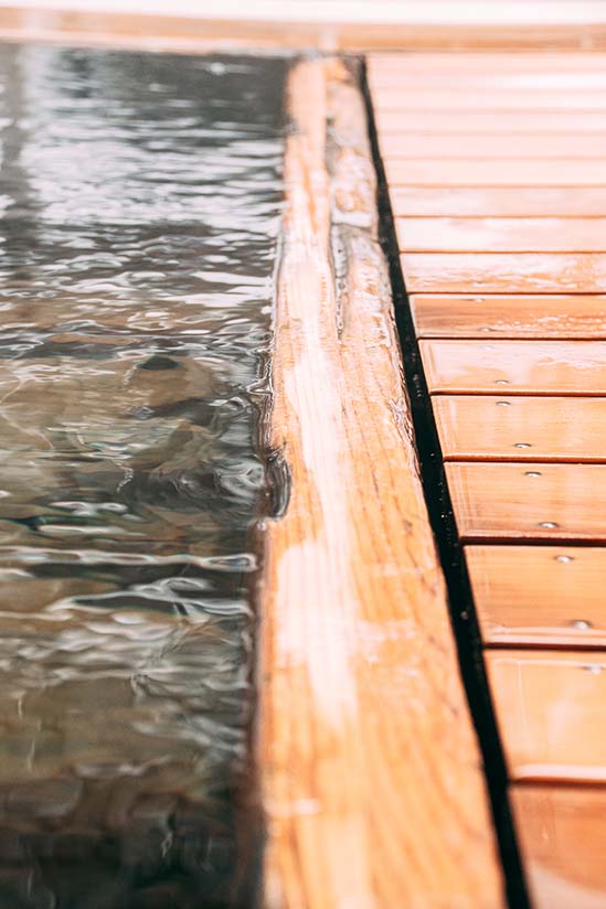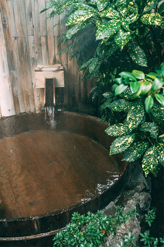 総ヒバ造りの露天風呂です。四季の移ろいを間近に感じながら、ゆったりとおくつろぎいただけます。