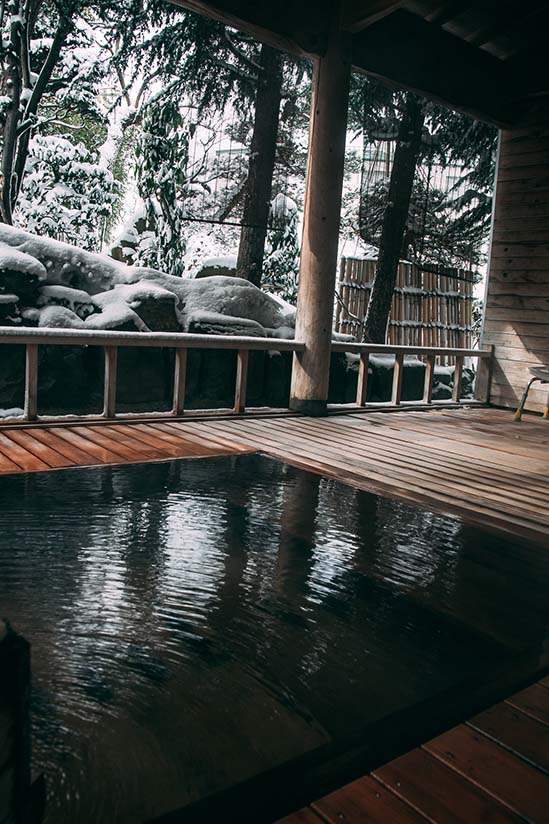 冬は雪景色とともに、特別な湯浴みの時間をお楽しみください。